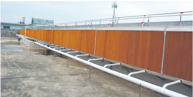 主要材料介紹:水簾降溫工程利用和環(huán)??照{(diào)相同的降溫原理,將水簾和負壓風機完美結合利用,其利用的基發(fā)器同樣是直接蒸發(fā)式換熱器“多層波纖組疊合物“水簾是瑞典的專利產(chǎn)品,是經(jīng)特殊處理的7090型“波議纖維紙合物,有良好的吸水性能和通風性能;耐水浸泡不變型:配腐蝕,正常使用壽命可超過5年,由于其利用水簾面積比環(huán)??照{(diào)大,所以其降溫效果要好于環(huán)??照{(diào),可以達到413℃的降溫帽度,和環(huán)??諠M降溫工程的不同點是水簾降溫是針對某個完整日相對封的區(qū)域,且在水厚度方面有100mm和50mm供選擇